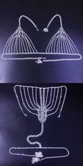 Bra and thong rhinestone chain mesh body jewelry set