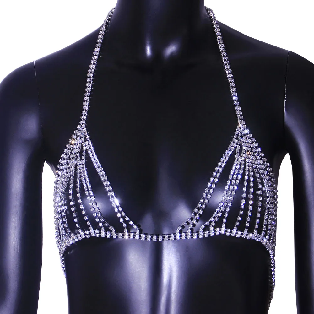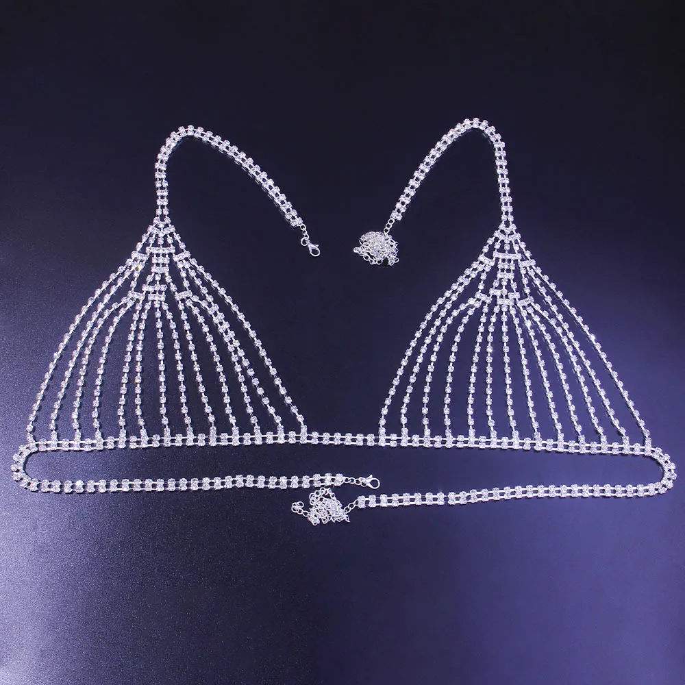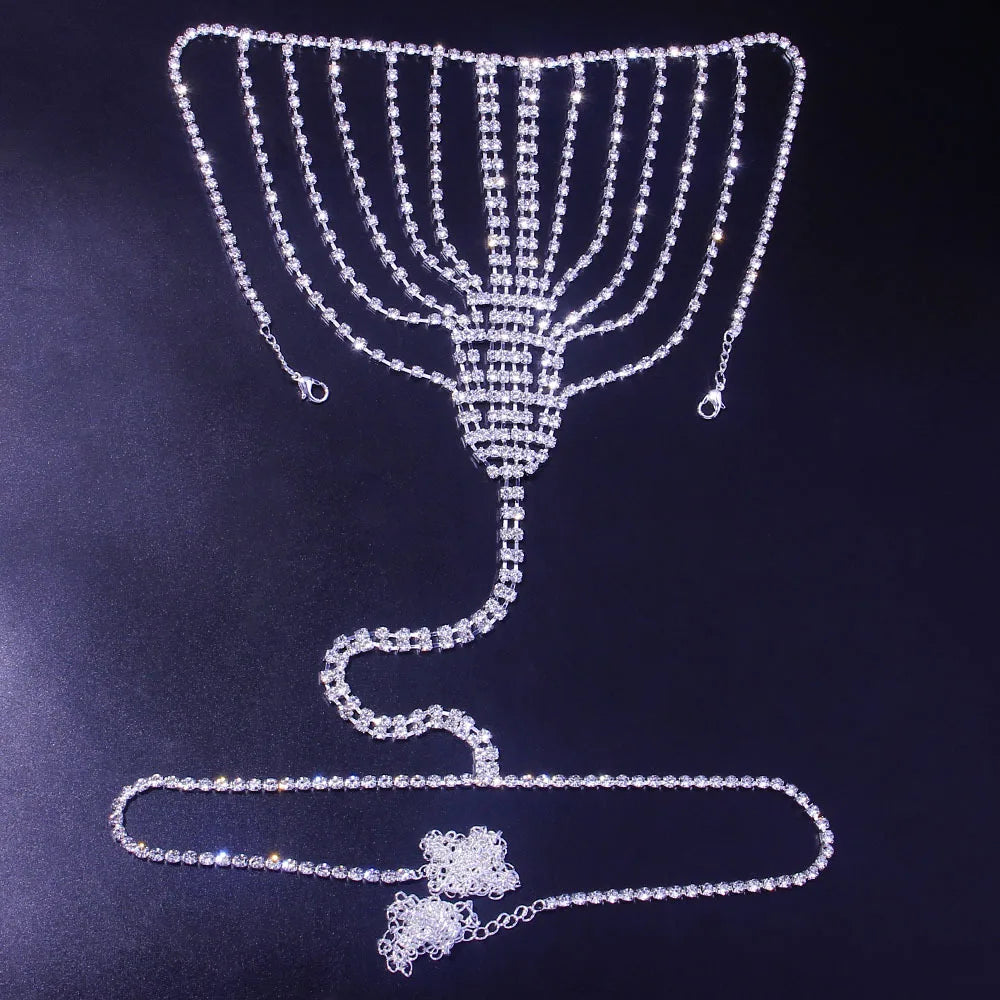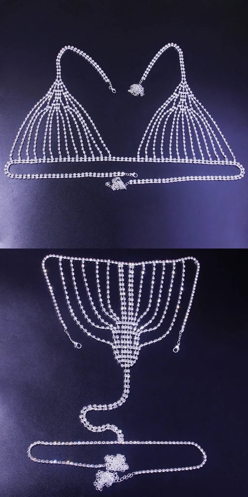 This Rhinestone Chain Mesh Underwear Set is a romantic and eye-catching body jewelry piece designed to enhance elegance and confidence. Featuring a sparkling crystal rhinestone mesh with a matching bra and thong body chain, this set delivers a refined yet playful look. Crafted with durable zinc alloy and finished with silver or 18K gold plating, it is ideal for fashion styling, special occasions, photoshoots, and beach or bikini wear.