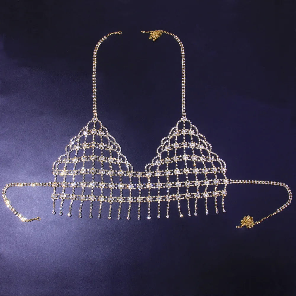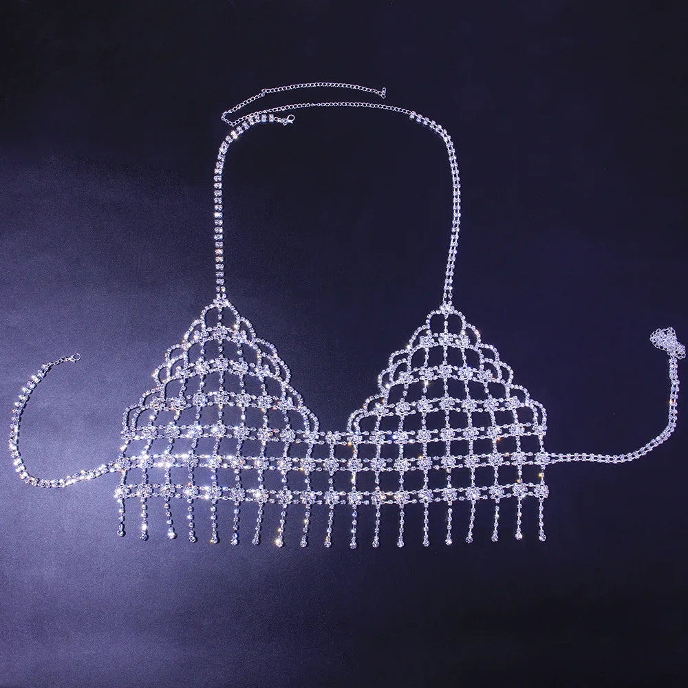 Crystal and rhinestone body chain bra jewelry